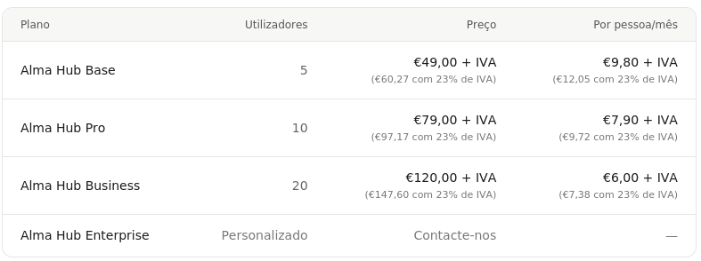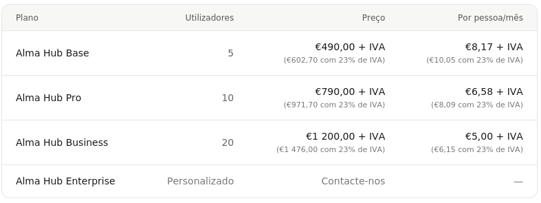 um ganho de €98,00 + IVA (€120,54 com 23% de IVA) na versão Base, €158,00 + IVA (€194,34 com 23% de IVA) na versão Pro e €240,00 + IVA (€295,20 com 23% de IVA) na versão Business.