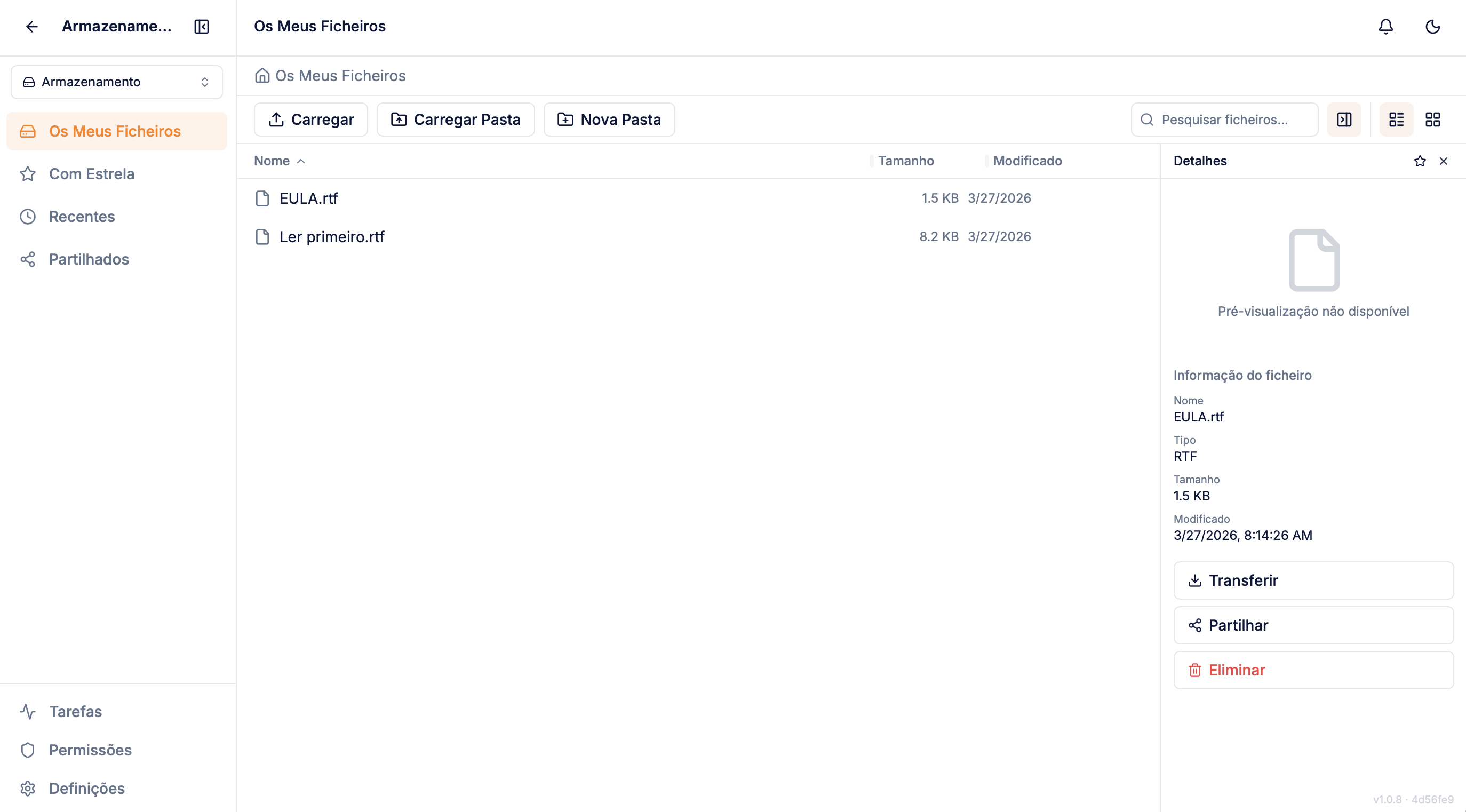 Tem ainda suporte a links protegidos por password, permissões por ficheiro e pré-visualização no browser, o Storage é também a sua ferramenta de entrega de conteúdo ao cliente. Tudo isto sobre Cloudflare R2, sem taxas de saída, com redundância automática, encriptação, upload drag-and-drop e WebDAV.